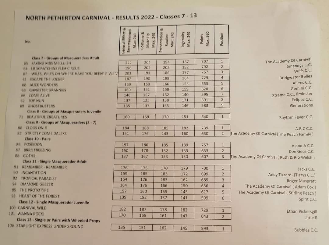 2022 – Results – Categories 7-13